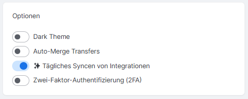 Gehe dazu in deine Kontoeinstellungen und deaktiviere die Option "Tägliches Syncen von Integrationen".