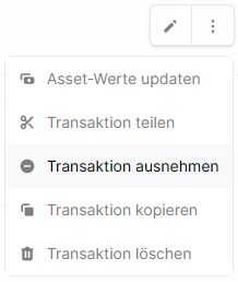 3. Manuelles Bearbeiten, Ausnehmen oder Löschen von Transaktionen