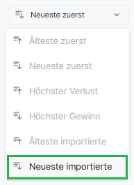 Sobald der Upload abgeschlossen ist, kannst du in deiner Transaktionsliste nach "Neuste importierte" sortieren, um alle neu importierten Transaktionen zu sehen.